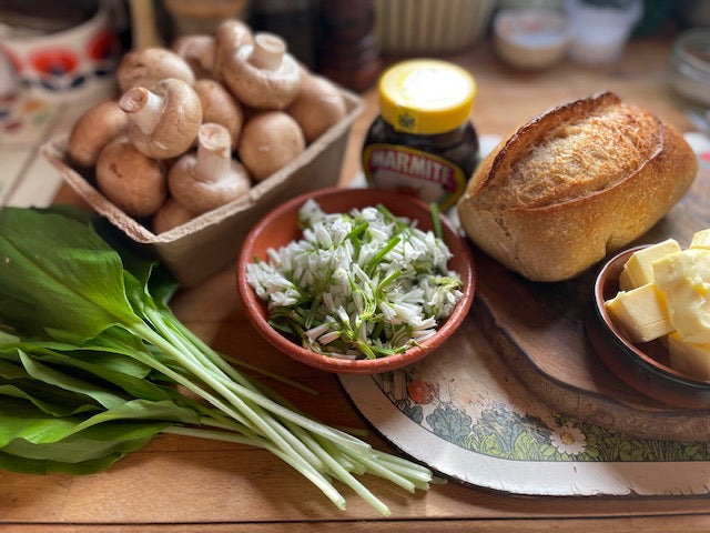 Ombersley mushrooms with toasted bread and wild garlic by Sam Ashton Booth